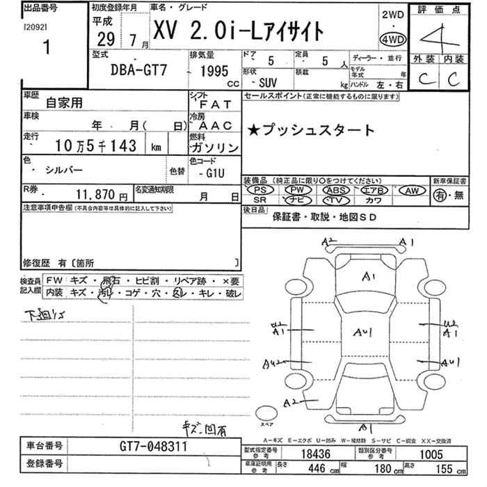 SUBARU XV - лот 1