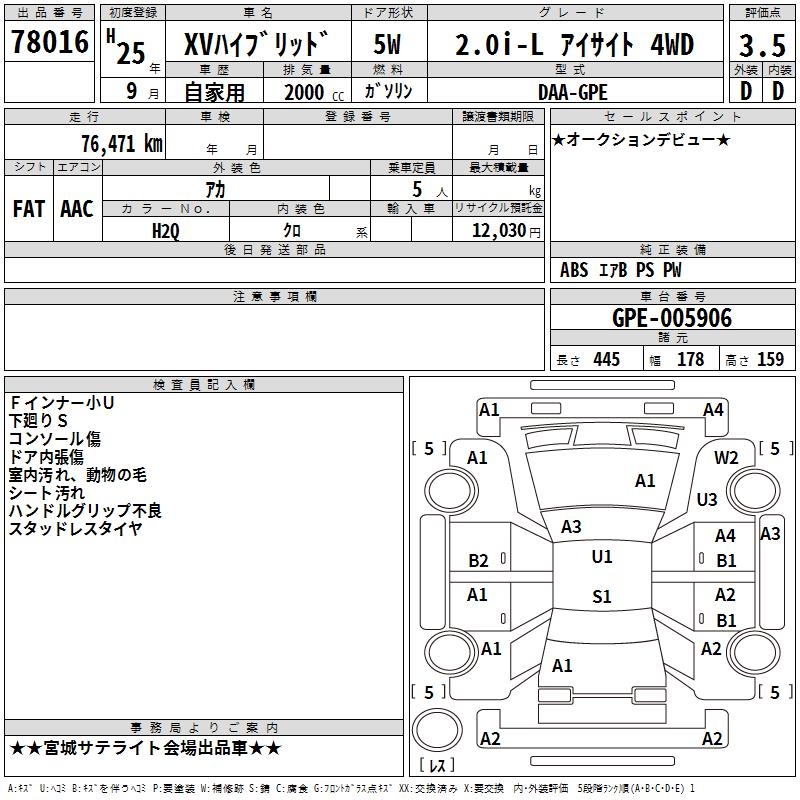 SUBARU XV - лот 78016
