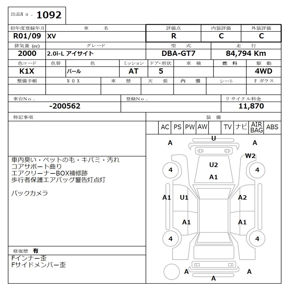 SUBARU XV - лот 1092