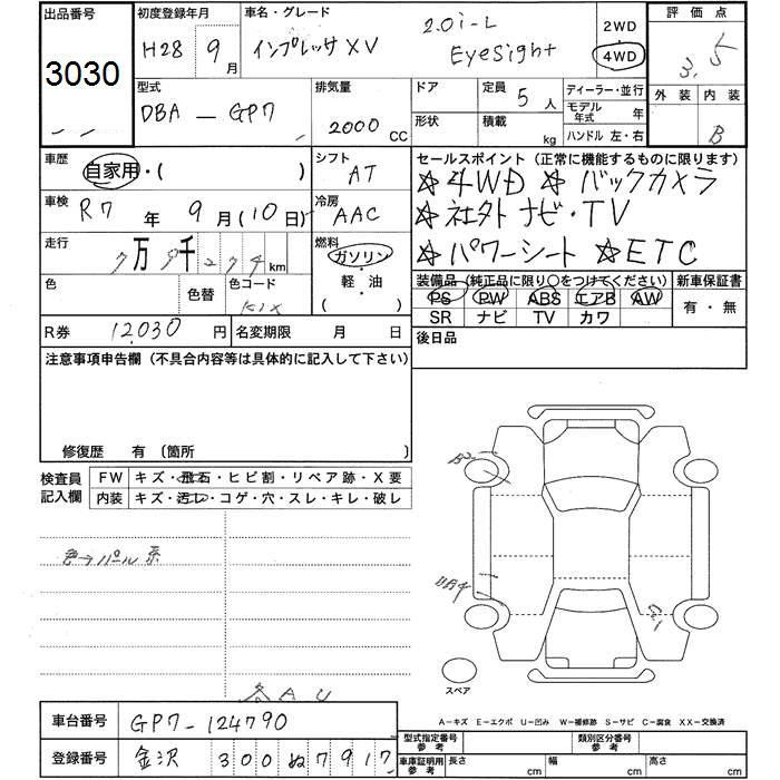 SUBARU XV - лот 3030
