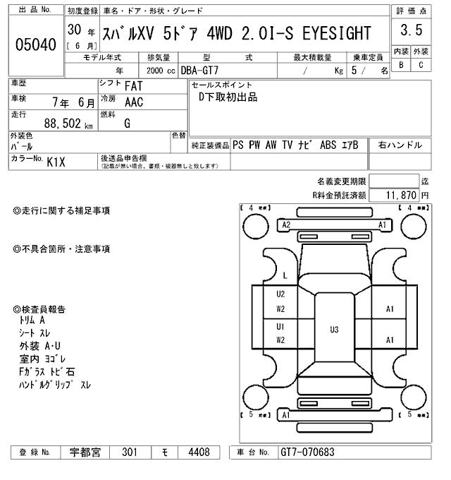 SUBARU XV - лот 5040
