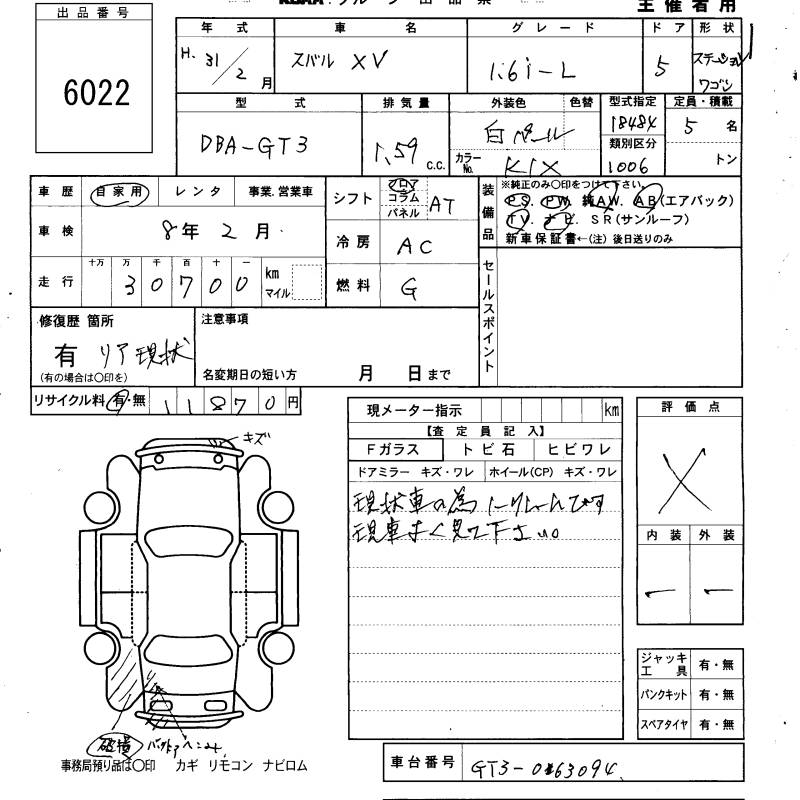 SUBARU XV - лот 6022