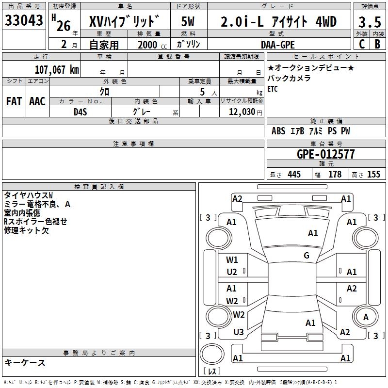 SUBARU XV - лот 33043