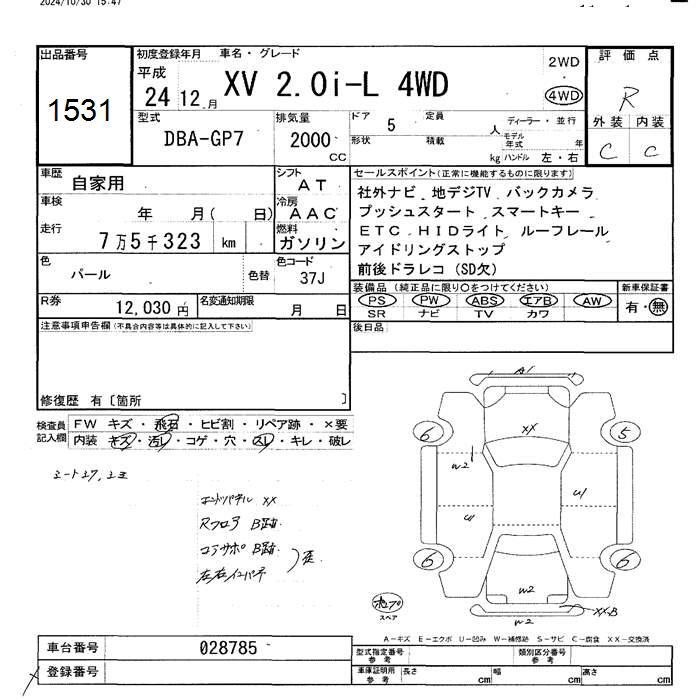 SUBARU XV - лот 1531