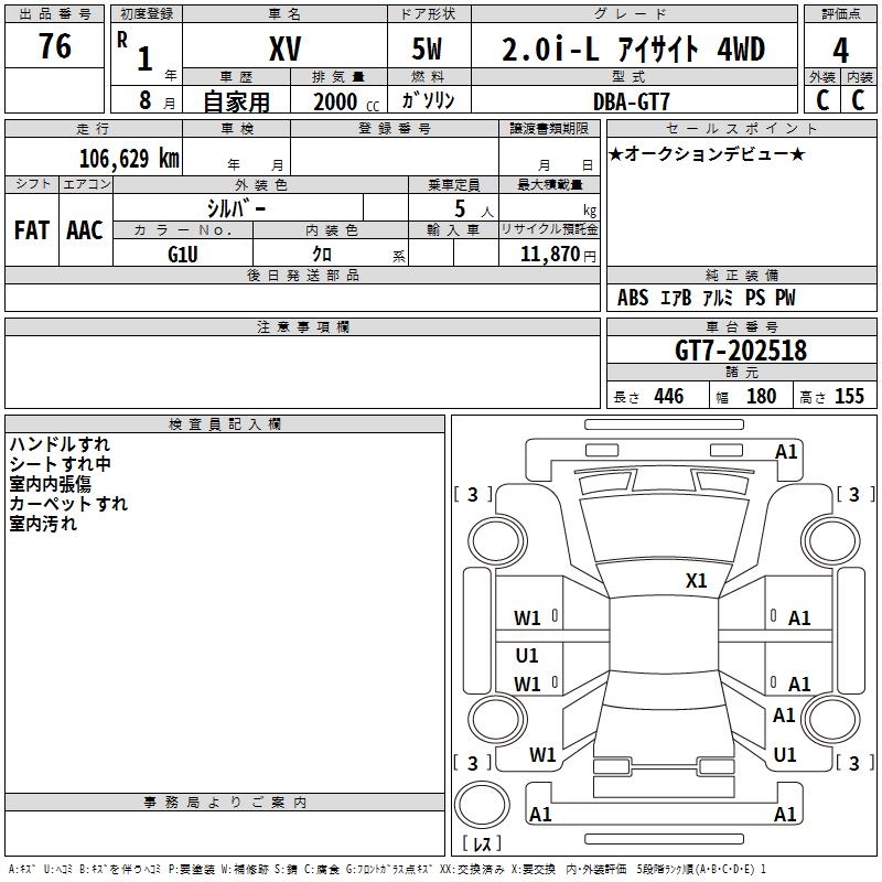 SUBARU XV - лот 76