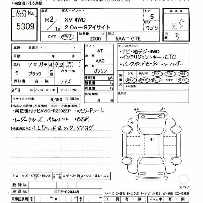 SUBARU XV - лот 5309