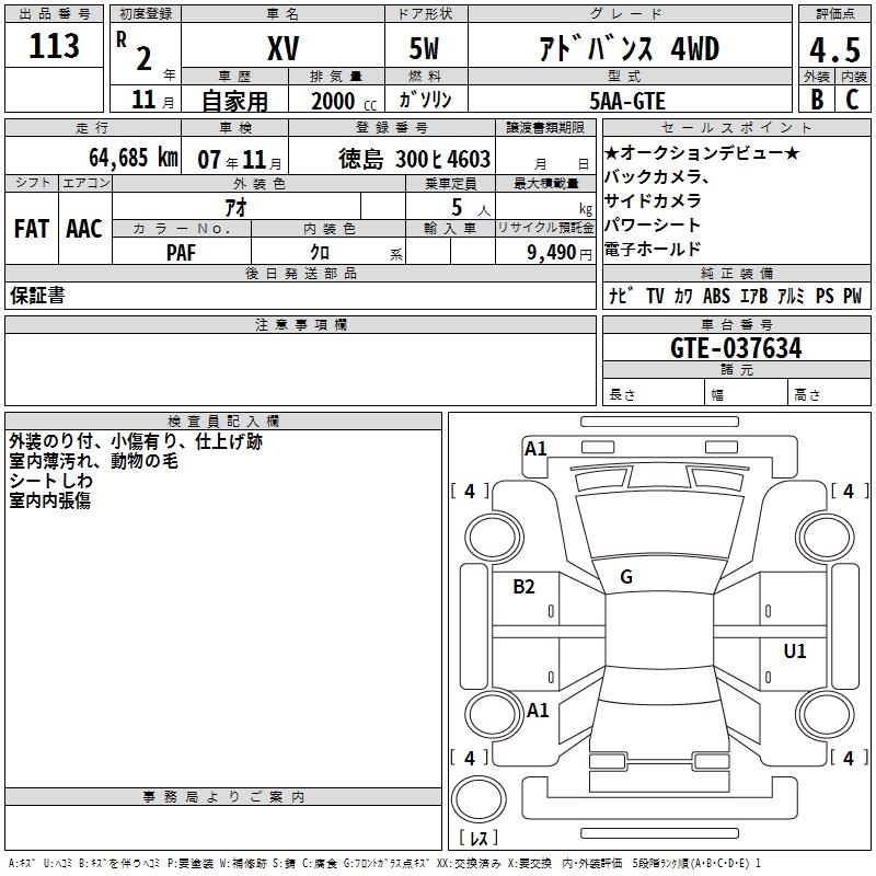 SUBARU XV - лот 113