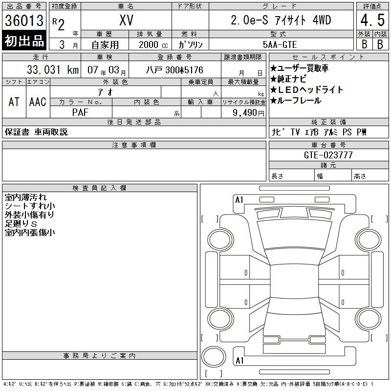 SUBARU XV - лот 36013