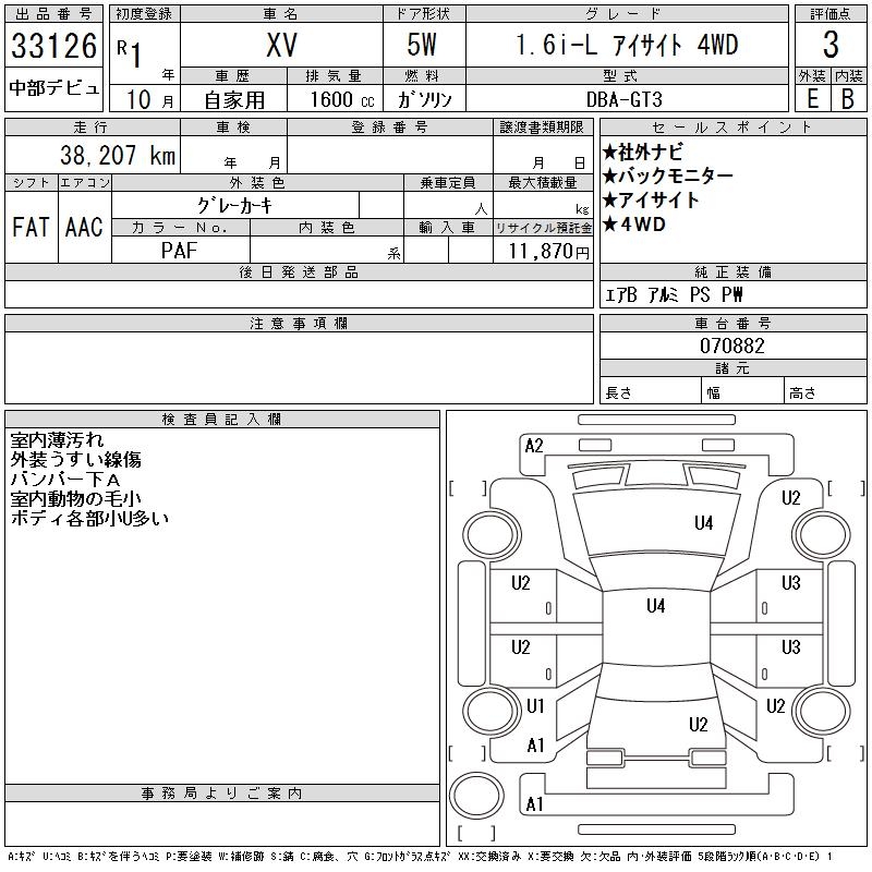 SUBARU XV - лот 33126