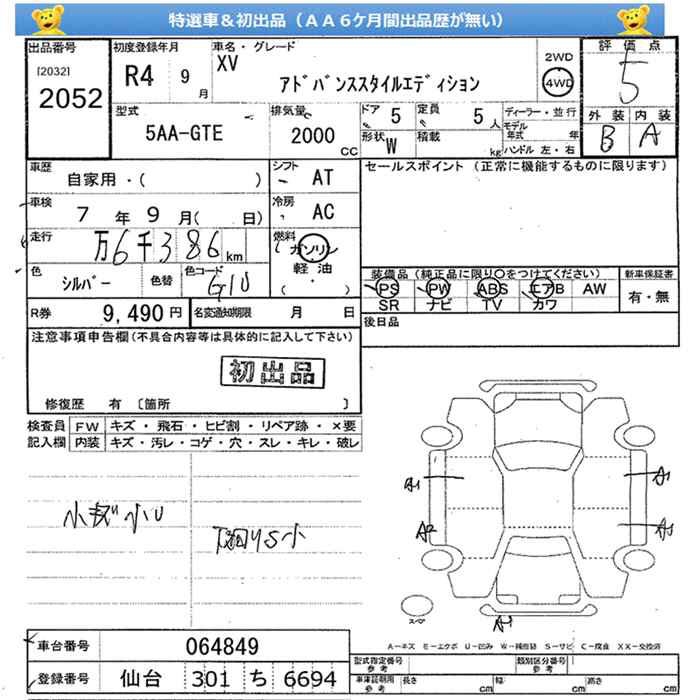 SUBARU XV - лот 2052
