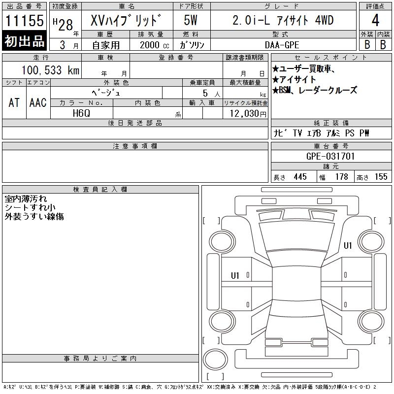 SUBARU XV - лот 11155