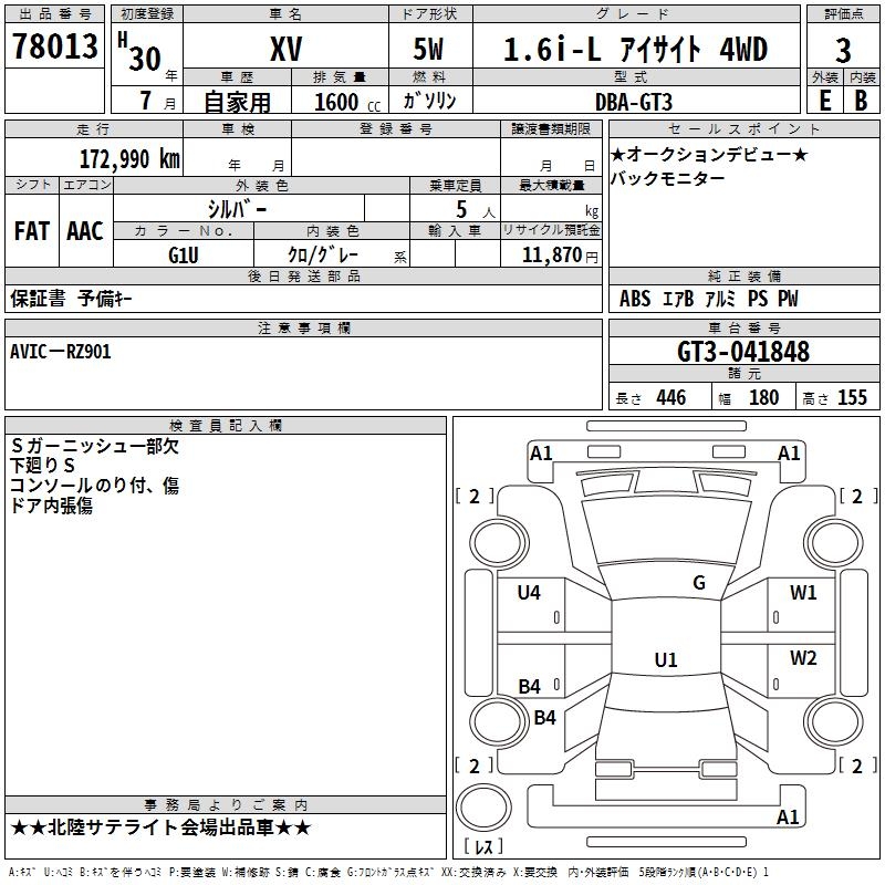 SUBARU XV - лот 78013