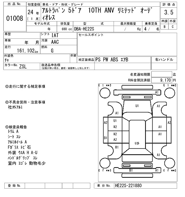SUZUKI ALTO LAPIN - лот 1008
