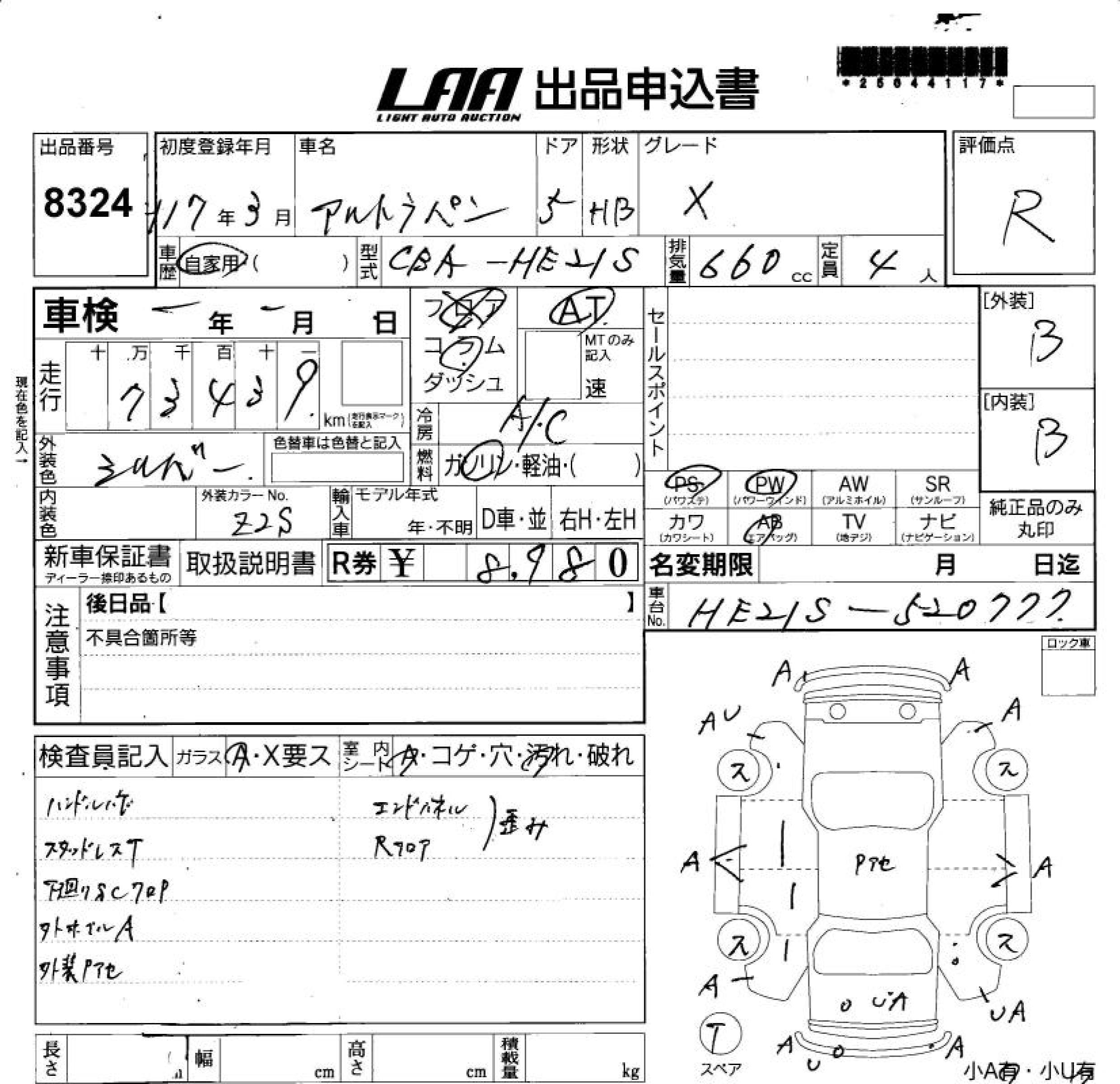 Все аукционы SUZUKI ALTO LAPIN