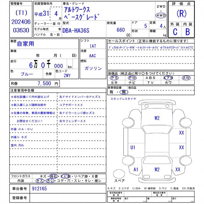 SUZUKI ALTO WORKS - лот 31035