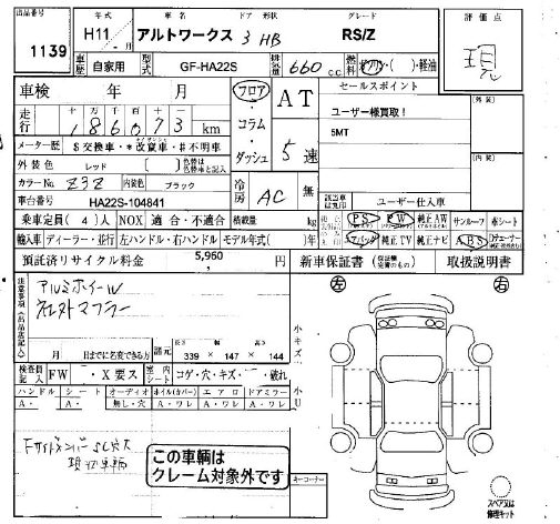 SUZUKI ALTO WORKS - лот 1139