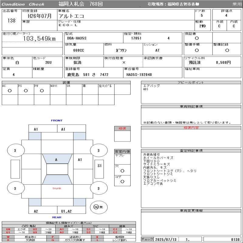 Все аукционы SUZUKI ALTO ECO