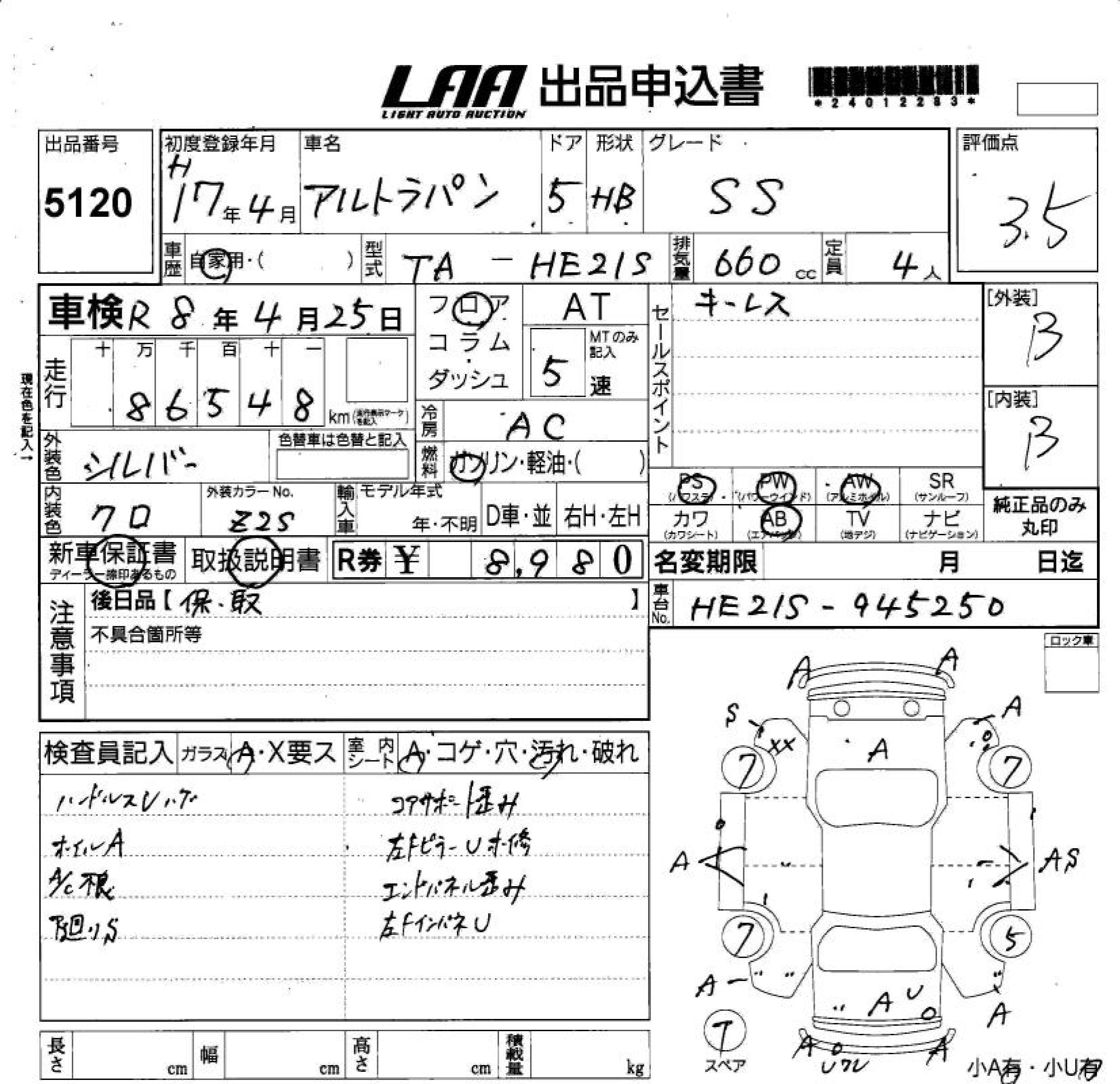 SUZUKI ALTO LAPIN SS - лот 5120
