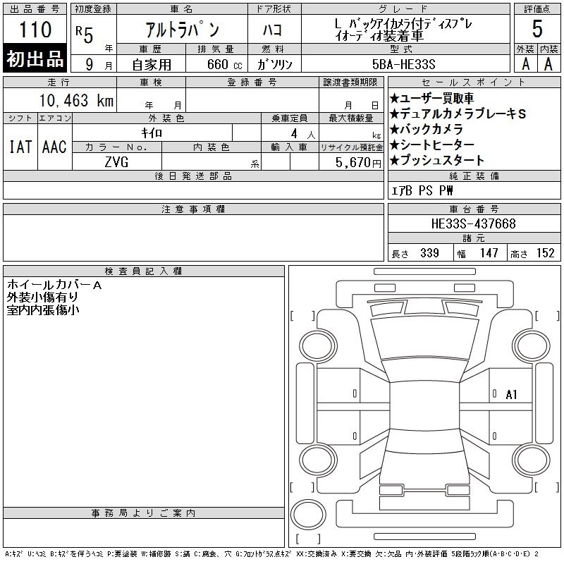 SUZUKI ALTO LAPIN L BUCK EYE CAMERA EXIST TIS PRE - лот 110
