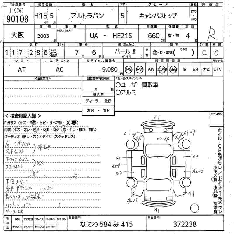 SUZUKI ALTO LAPIN CANVAS TOP - лот 90108