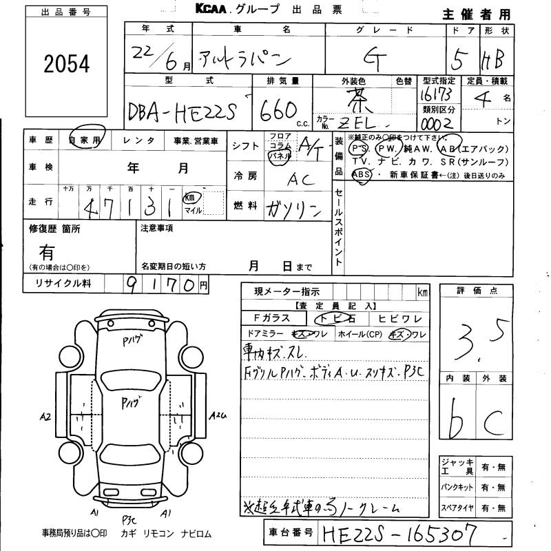 SUZUKI ALTO LAPIN G - лот 2054