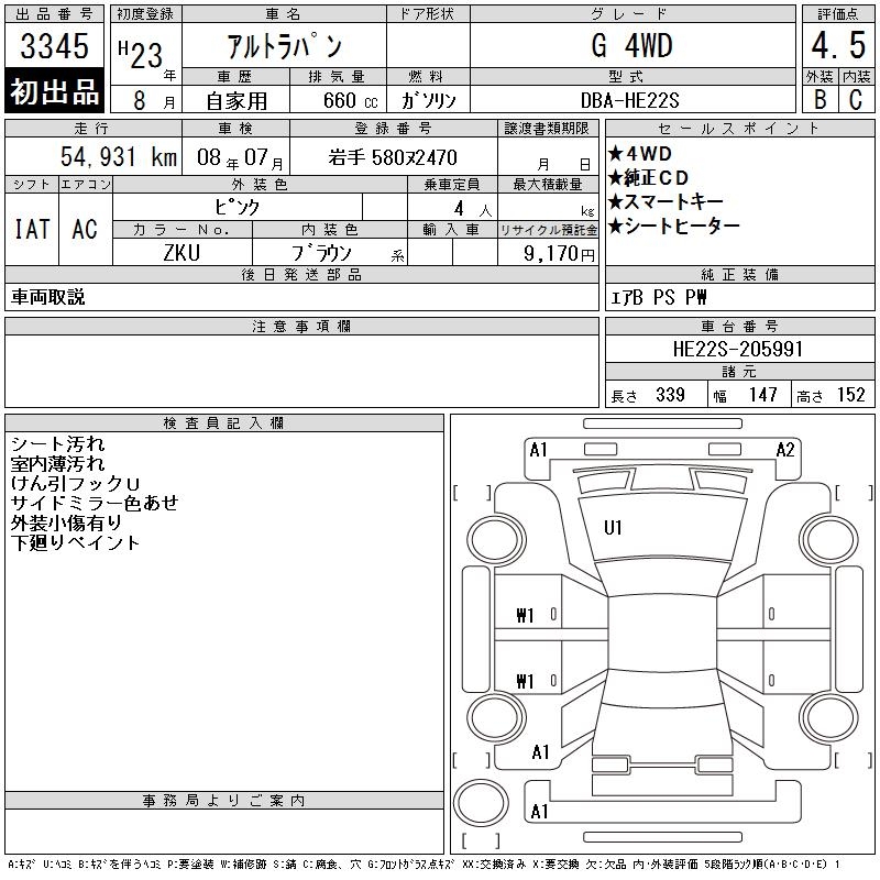 SUZUKI ALTO LAPIN G 4WD - лот 3345