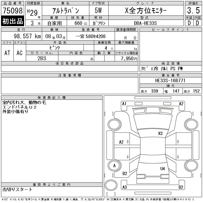 SUZUKI ALTO LAPIN XZEN HOWE I MONITOR - лот 75098