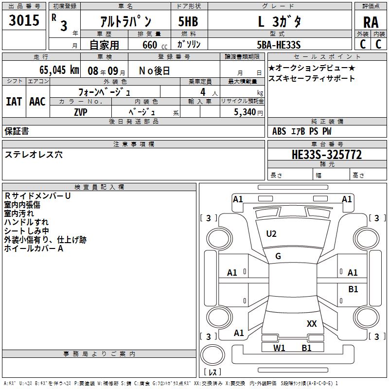 SUZUKI ALTO LAPIN L 3 RATTLING - лот 3015