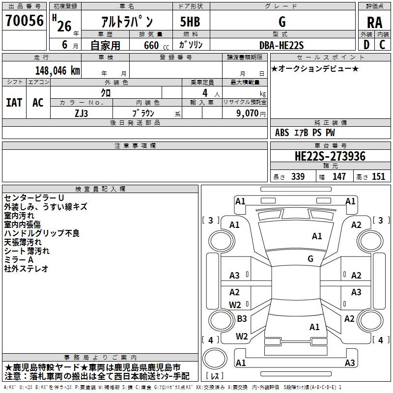 SUZUKI ALTO LAPIN G - лот 70056