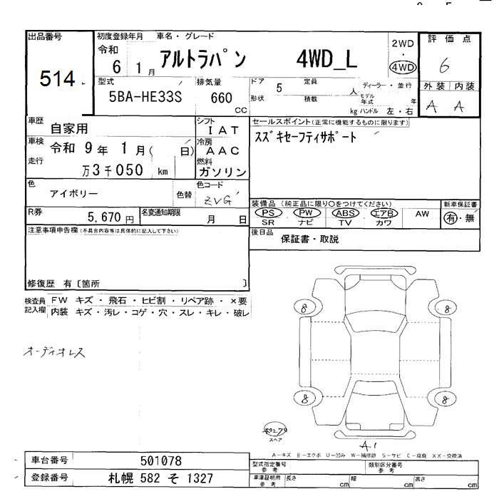 SUZUKI ALTO LAPIN 4WD L - лот 514