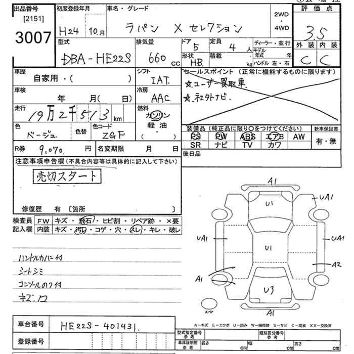 SUZUKI ALTO LAPIN X SELECTION - лот 3007