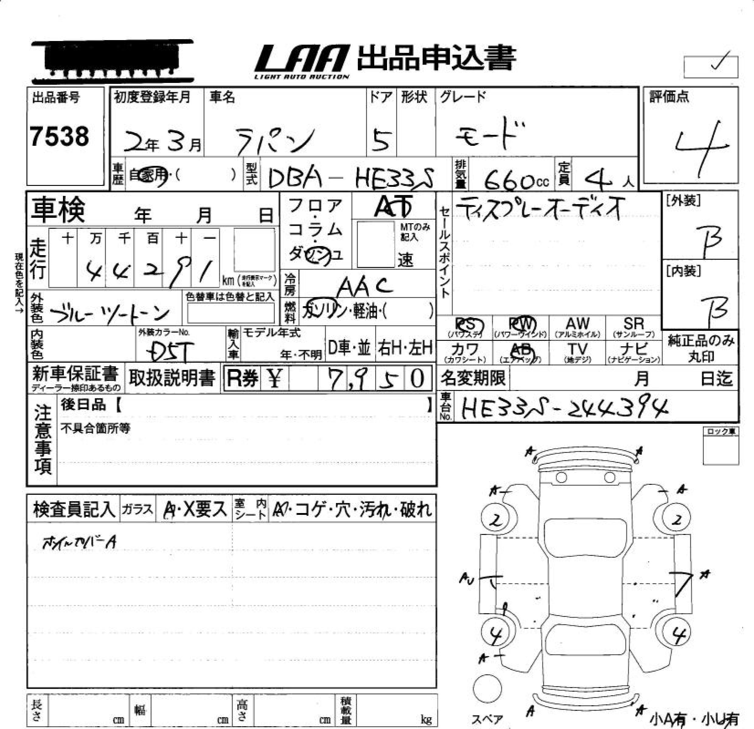 SUZUKI ALTO LAPIN MODE - лот 7538