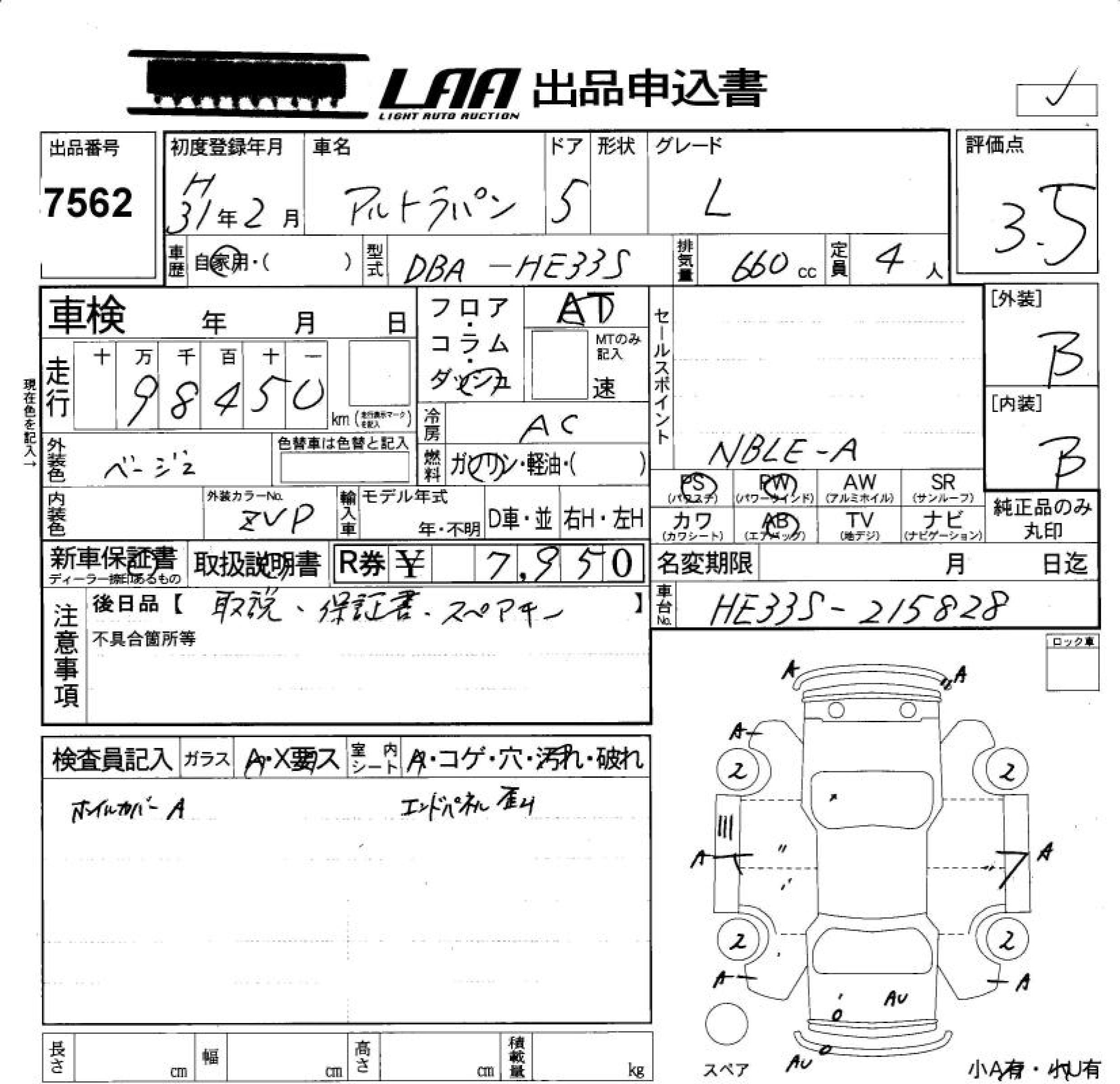 SUZUKI ALTO LAPIN L - лот 7562