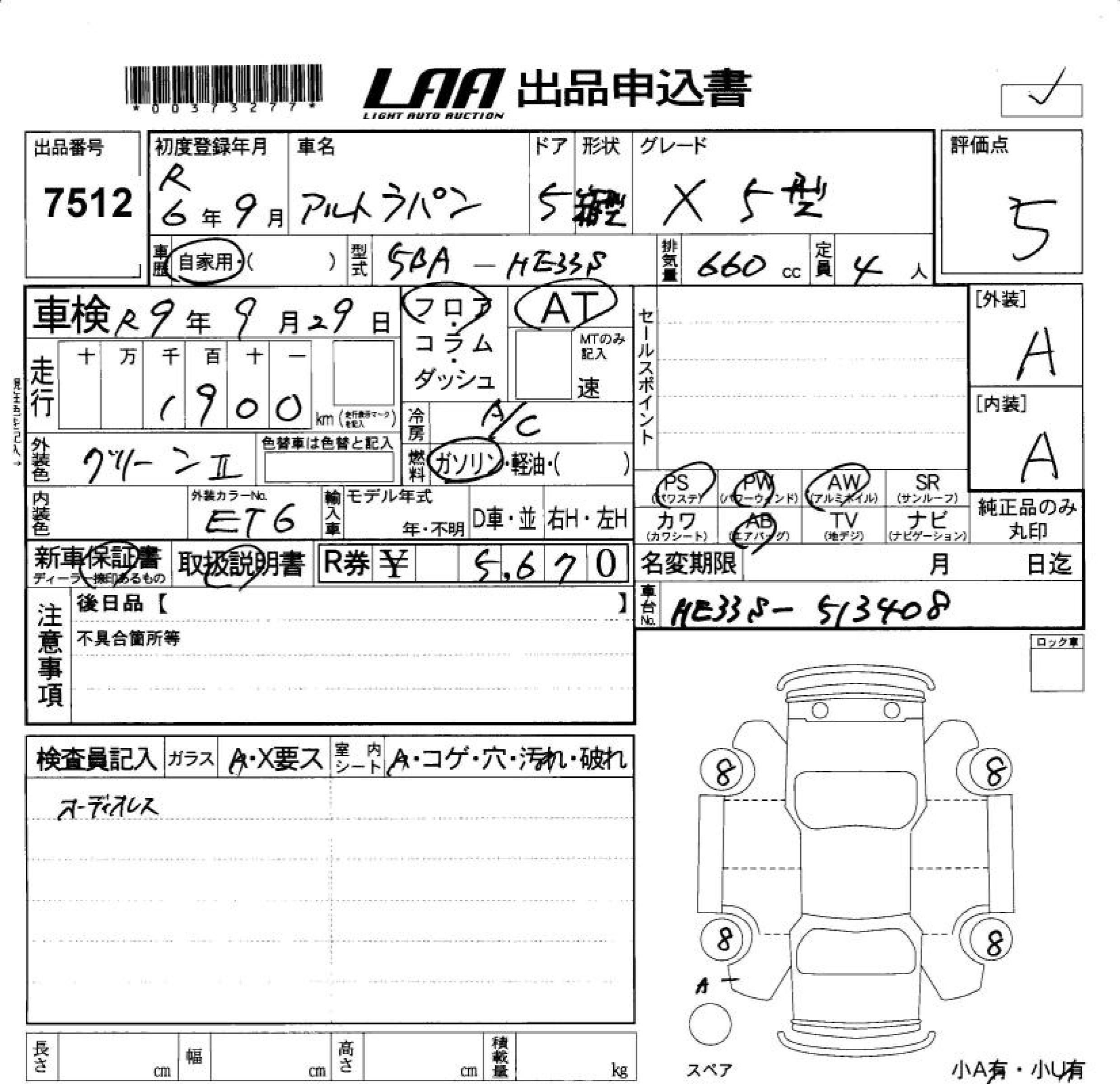 SUZUKI ALTO LAPIN X 5 TYPE - лот 7512