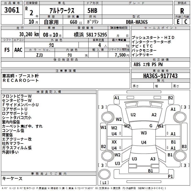 SUZUKI ALTO WORKS - лот 3061