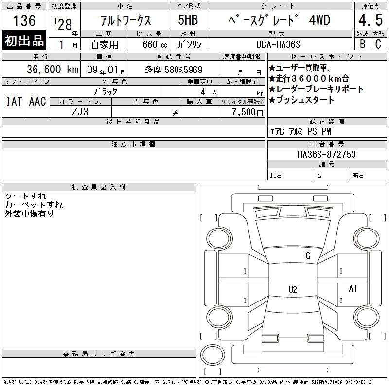 SUZUKI ALTO WORKS BASE GRADE 4WD - лот 136