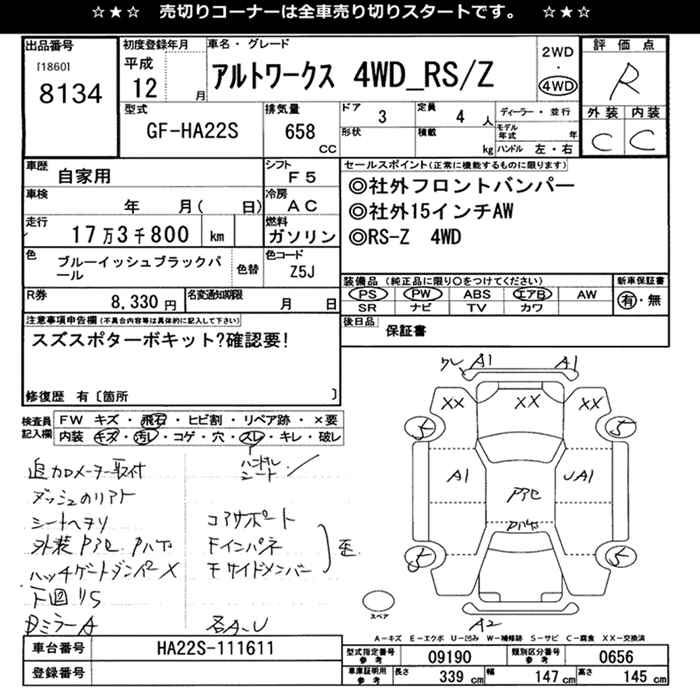 SUZUKI ALTO WORKS 4WD RS-Z - лот 8134