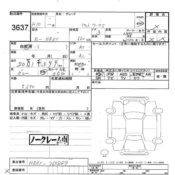 SUZUKI ALTO WORKS 4WD - лот 3637