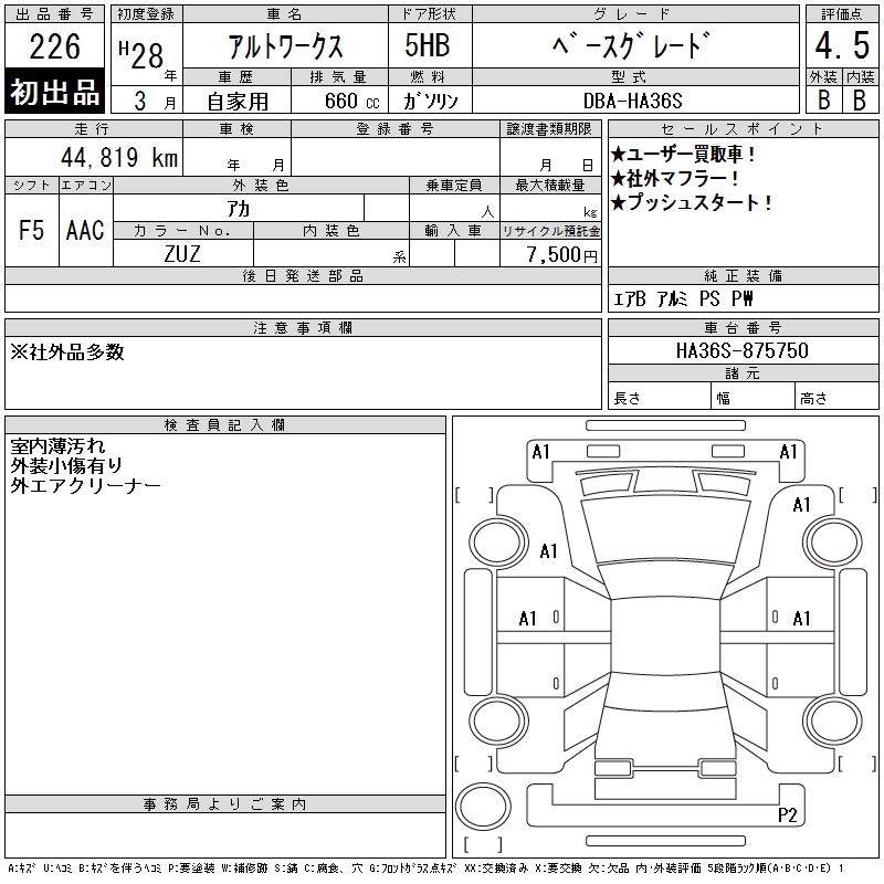 SUZUKI ALTO WORKS BASE GRADE - лот 226