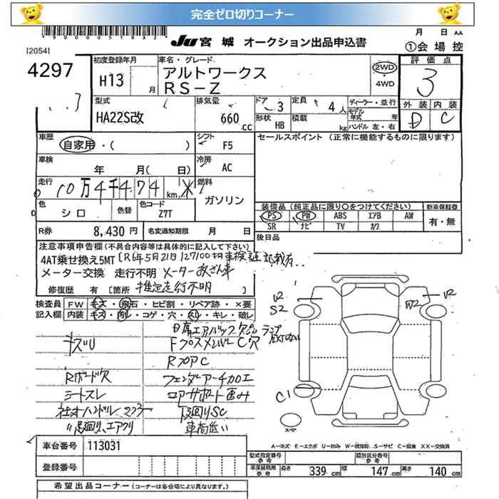 SUZUKI ALTO WORKS RS-Z - лот 4297
