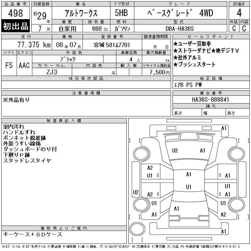 SUZUKI ALTO WORKS BASE GRADE 4WD - лот 498