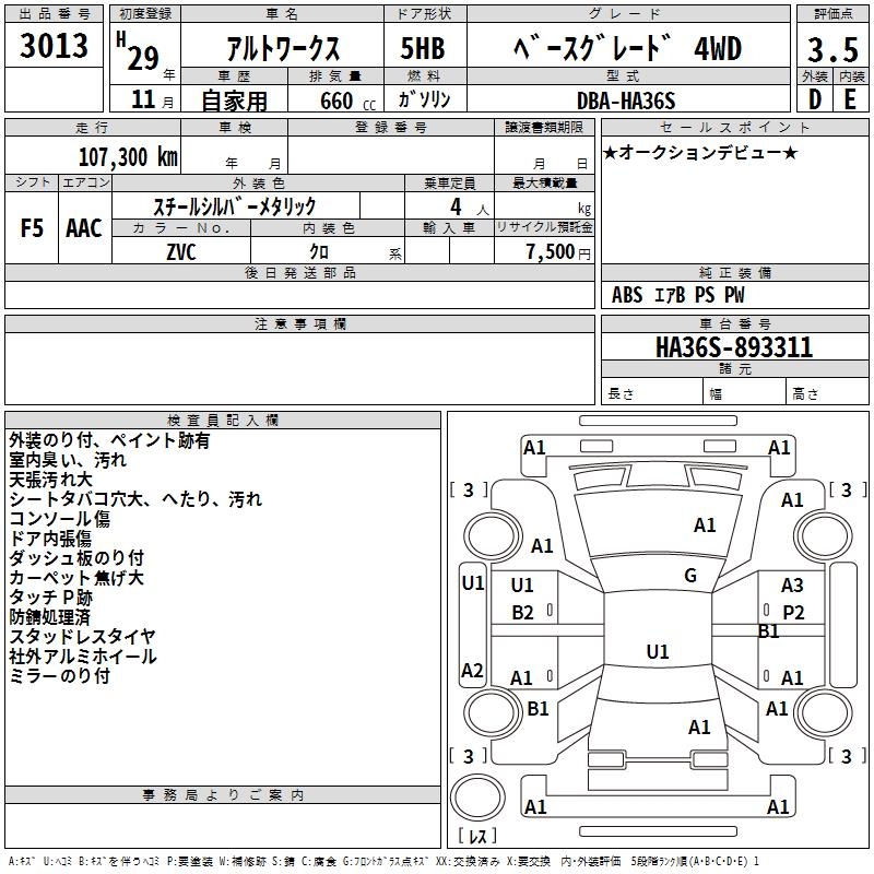 SUZUKI ALTO WORKS BASE GRADE 4WD - лот 3013