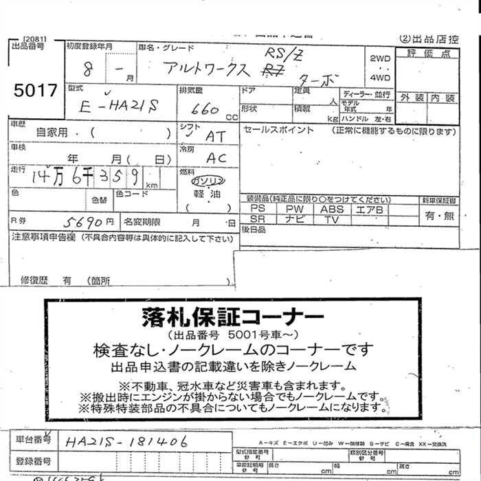 SUZUKI ALTO WORKS RS-Z - лот 5017