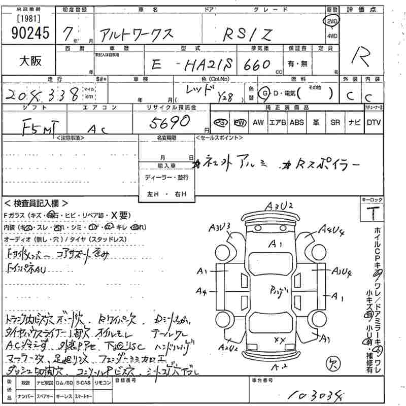 SUZUKI ALTO WORKS RS/Z - лот 90245
