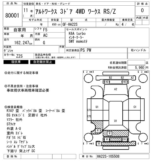 SUZUKI ALTO WORKS 4WD - лот 80001