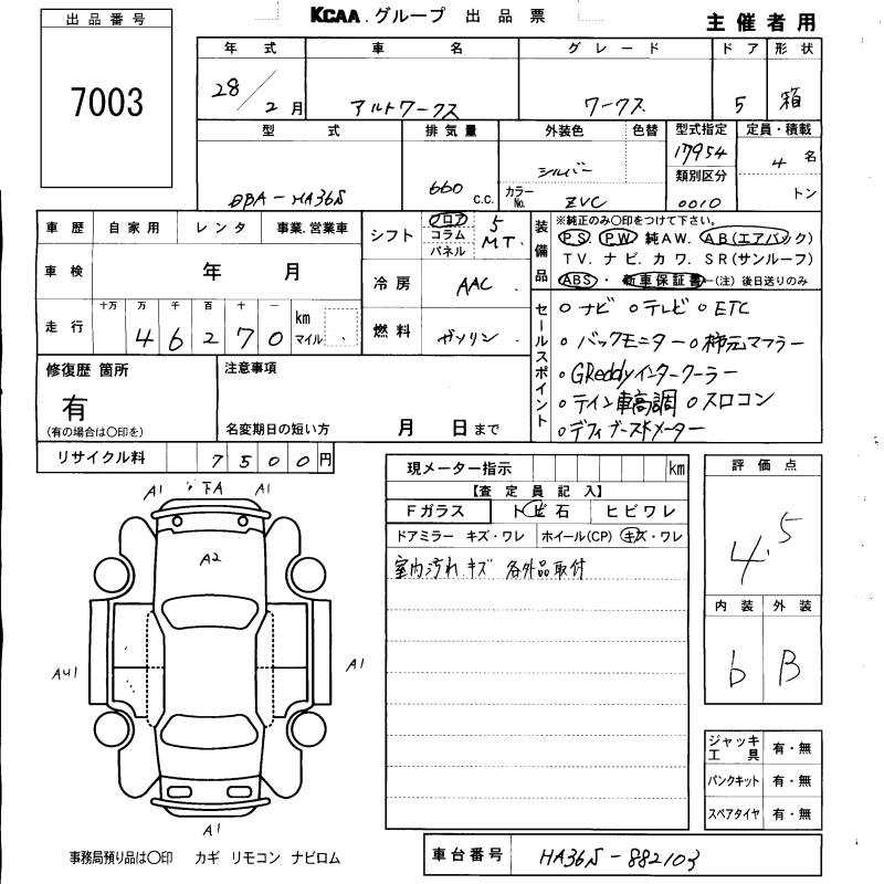 SUZUKI ALTO WORKS WORKS - лот 7003