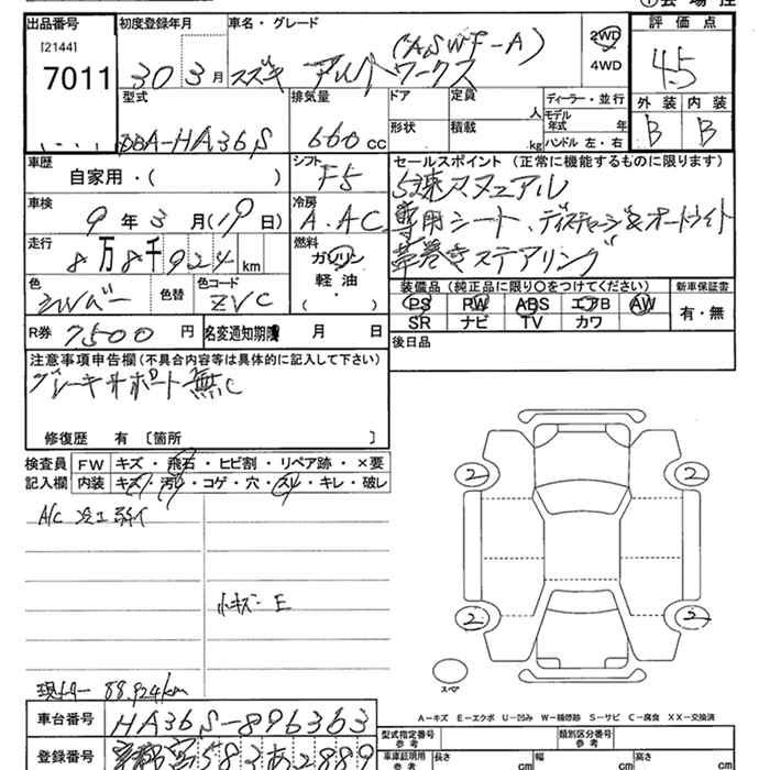 SUZUKI ALTO WORKS WORKS - лот 7011