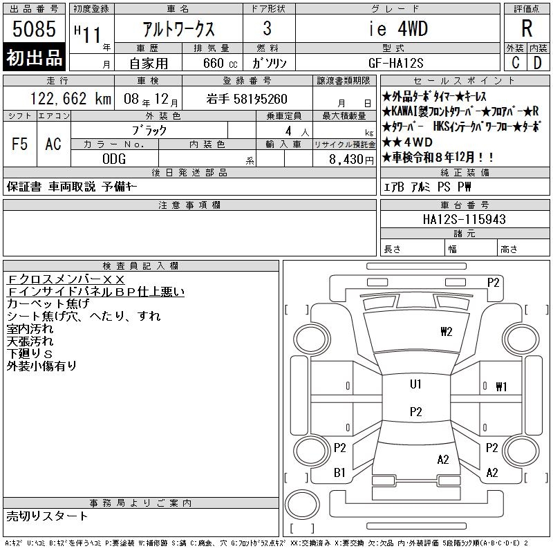 SUZUKI ALTO WORKS ie 4WD - лот 5085