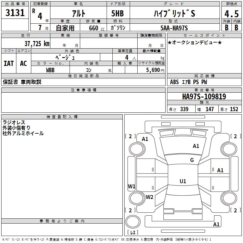 SUZUKI ALTO HYBRID S - лот 3131