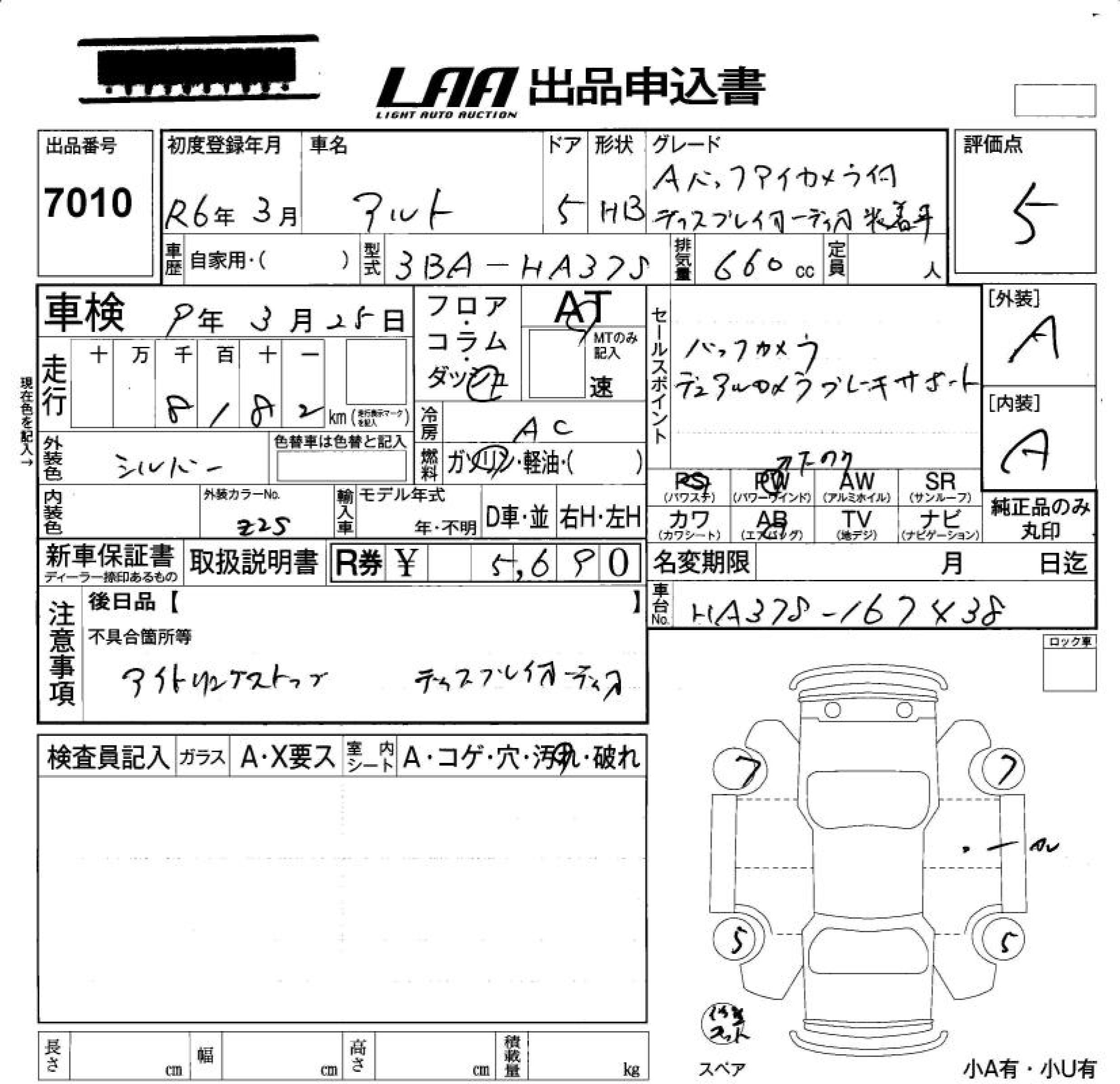 SUZUKI ALTO A BACK CAMERA ATTACHING DISPLAY - лот 7010